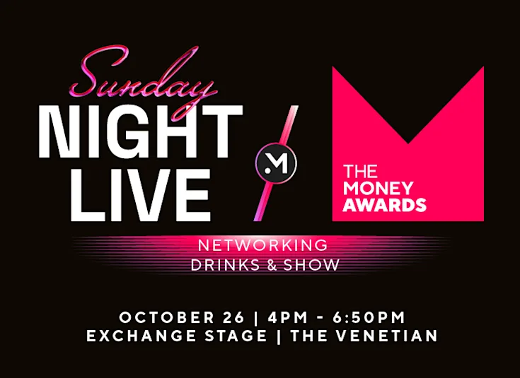Kickoff your Sunday night with an exclusive pre-show drinks reception where fintech's biggest names gather. Network in a high-energy atmosphere before immersing yourself in our returning Sunday Night Live featuring the inaugural Money Awards.